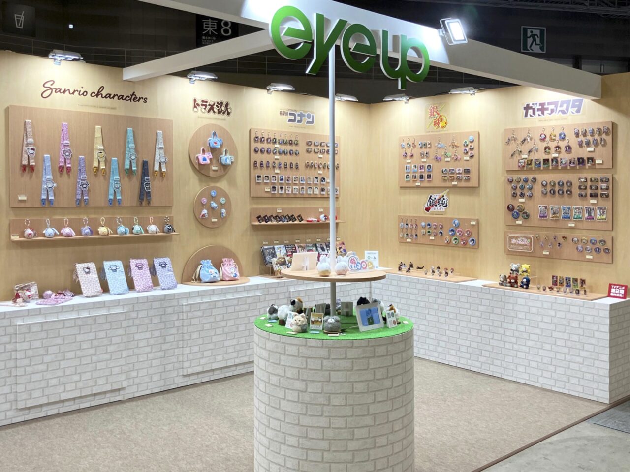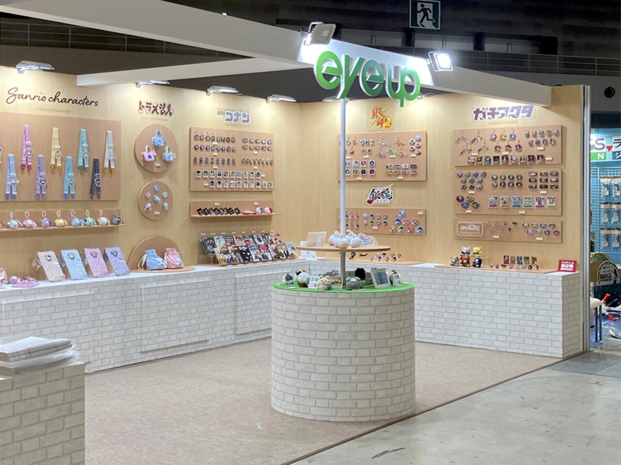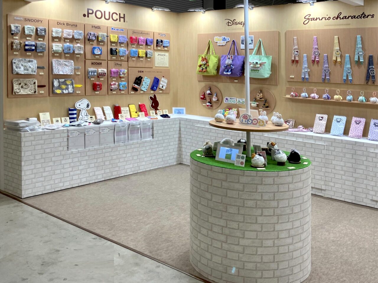 人気キャラクター雑貨、アニメグッズなど小さな商品が多いため、カテゴリーごとにパネルでまとめて見やすさを工夫。来場者の動線も確保したレイアウトになっています。