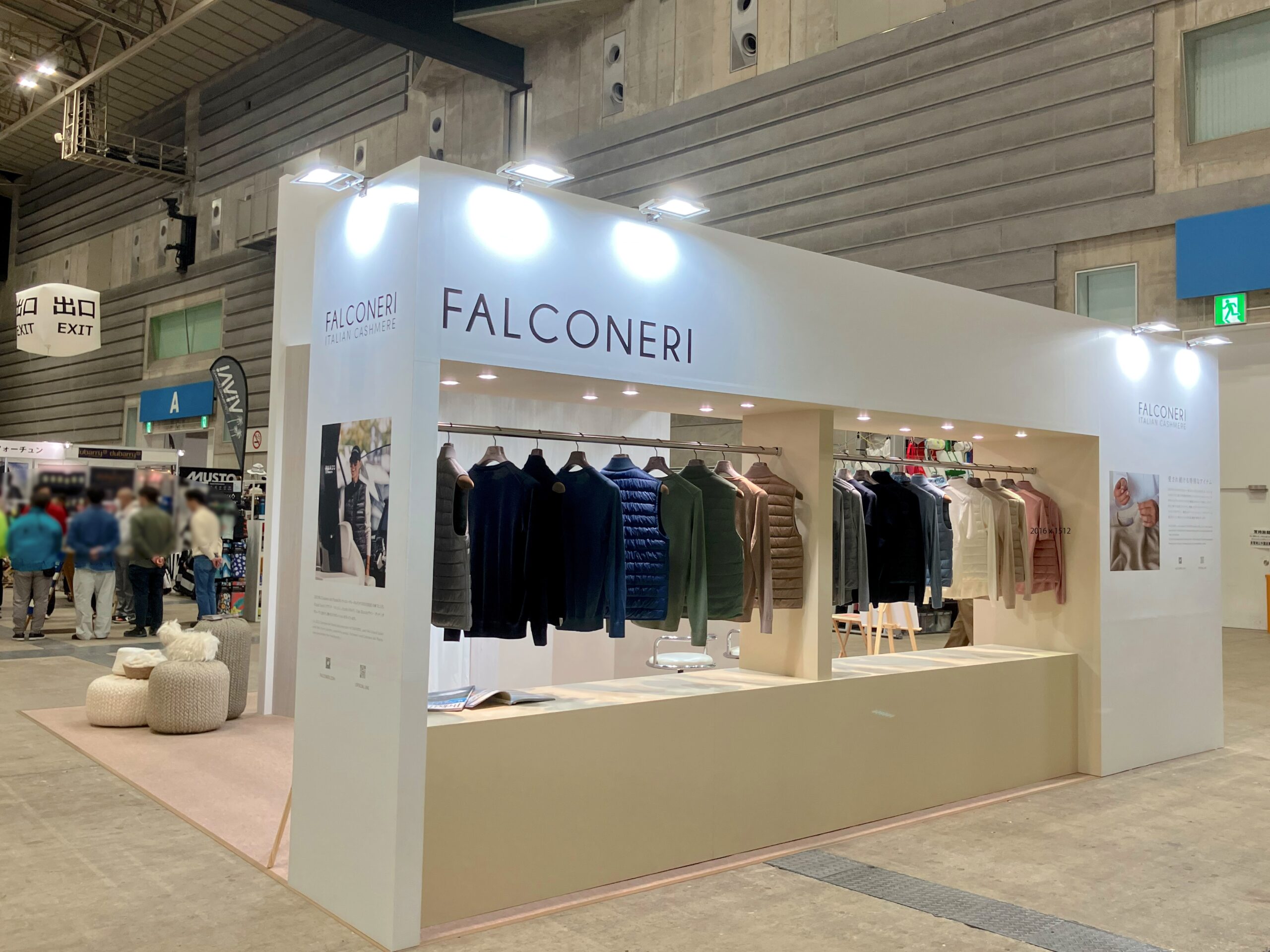 海でも活躍するダウンベストやカシミアセーターなど、上質なカシミアを使用した商品を展示、販売しました。