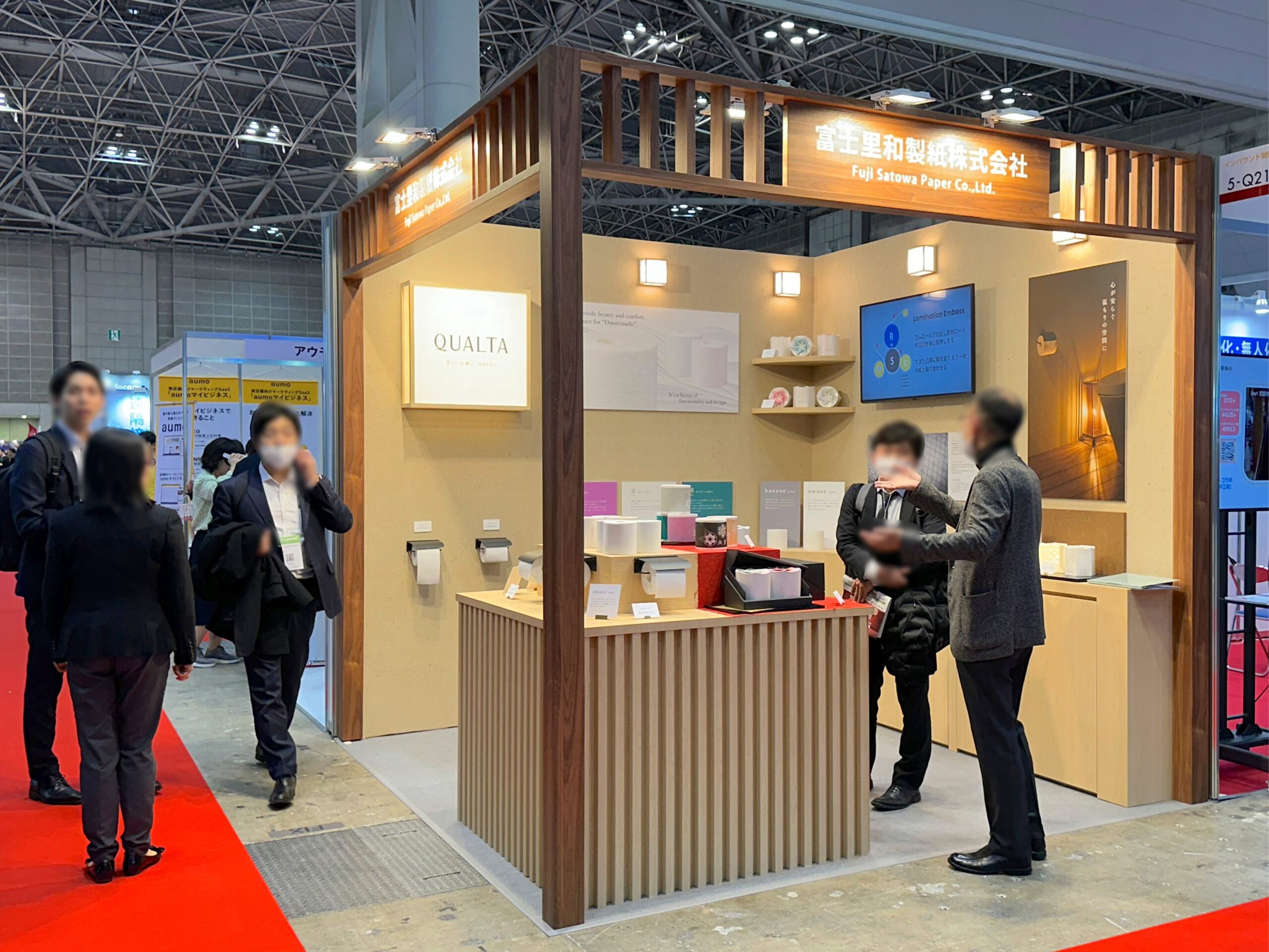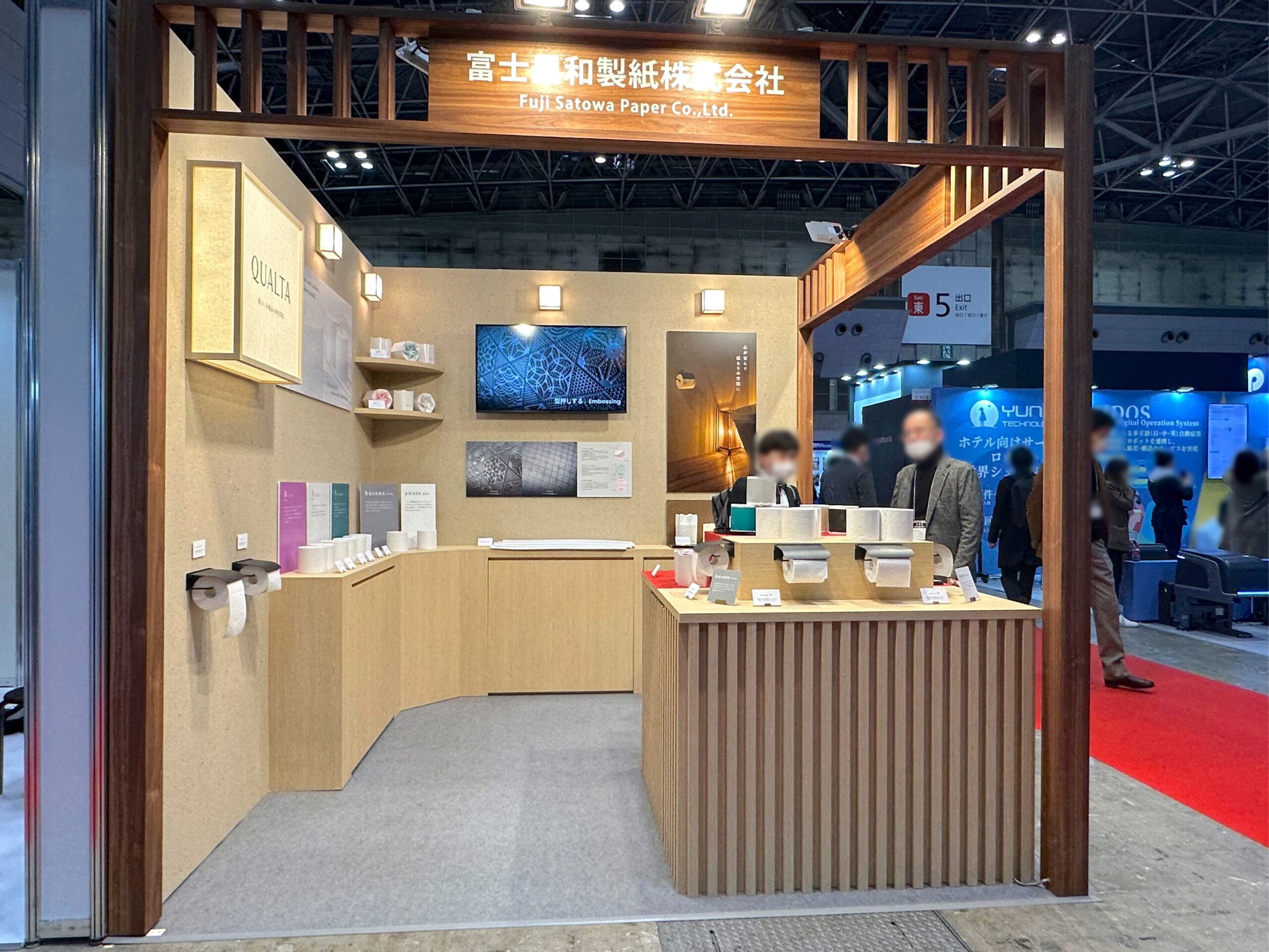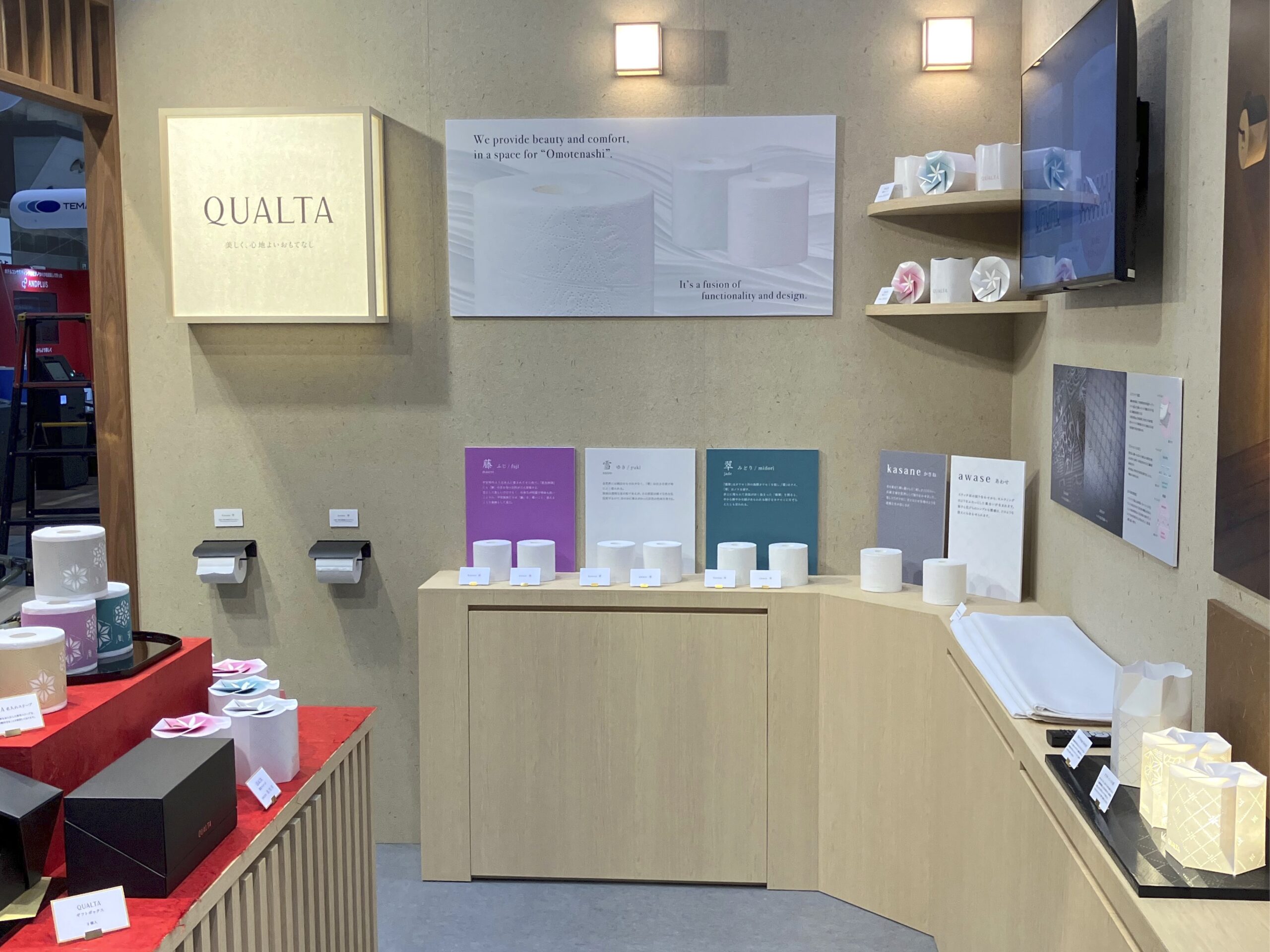 上質なおもてなしのためのトイレットペーパー、QUALTAブランドのブースです。