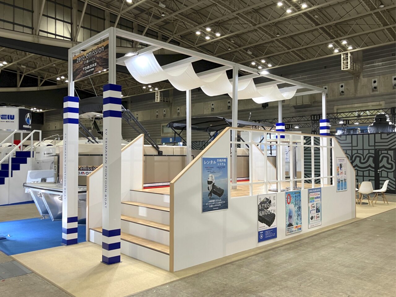 販売開始したばかりのポンツーンボートを展示するブースのデザイン・制作・施工を行いました。
