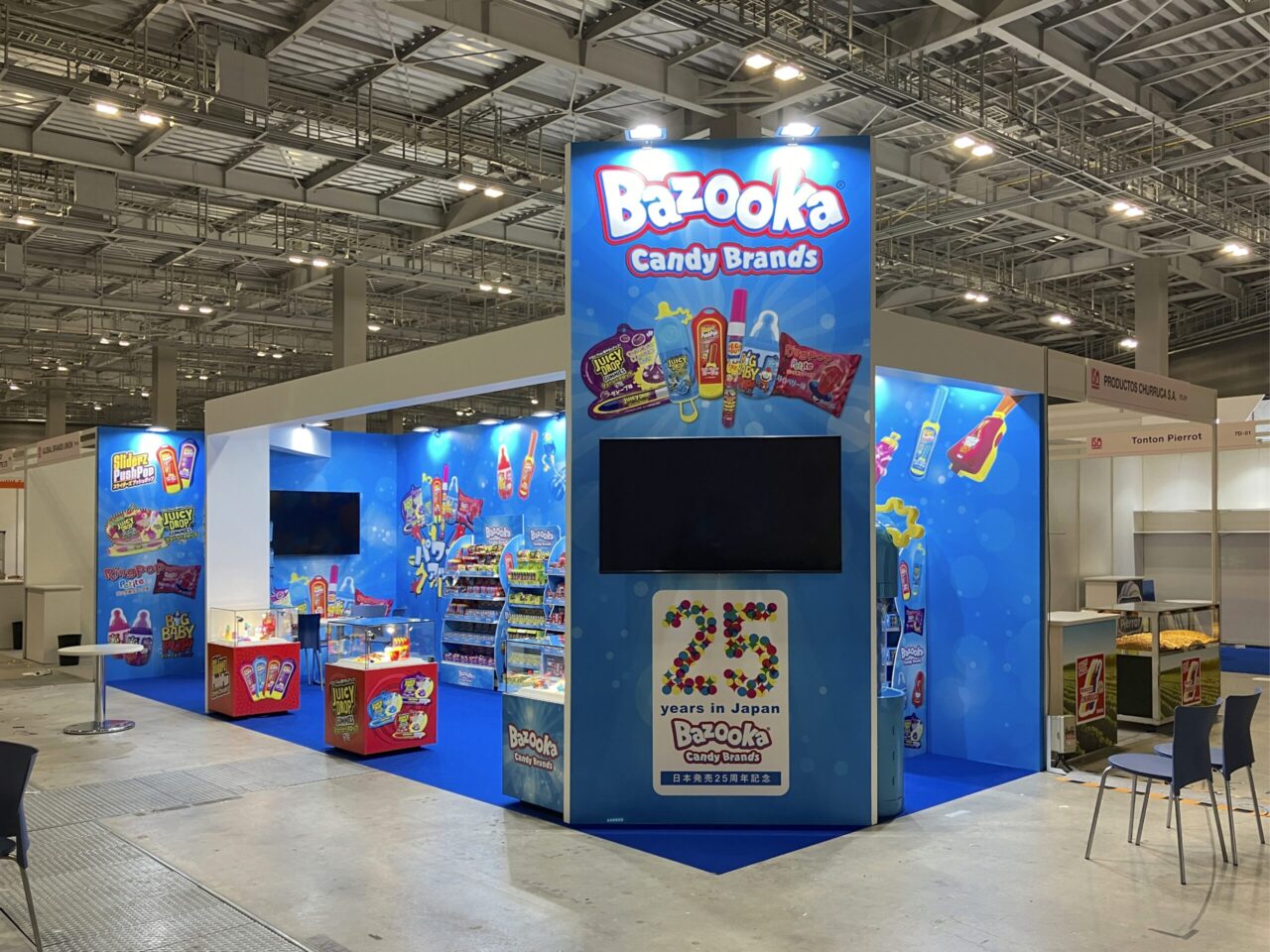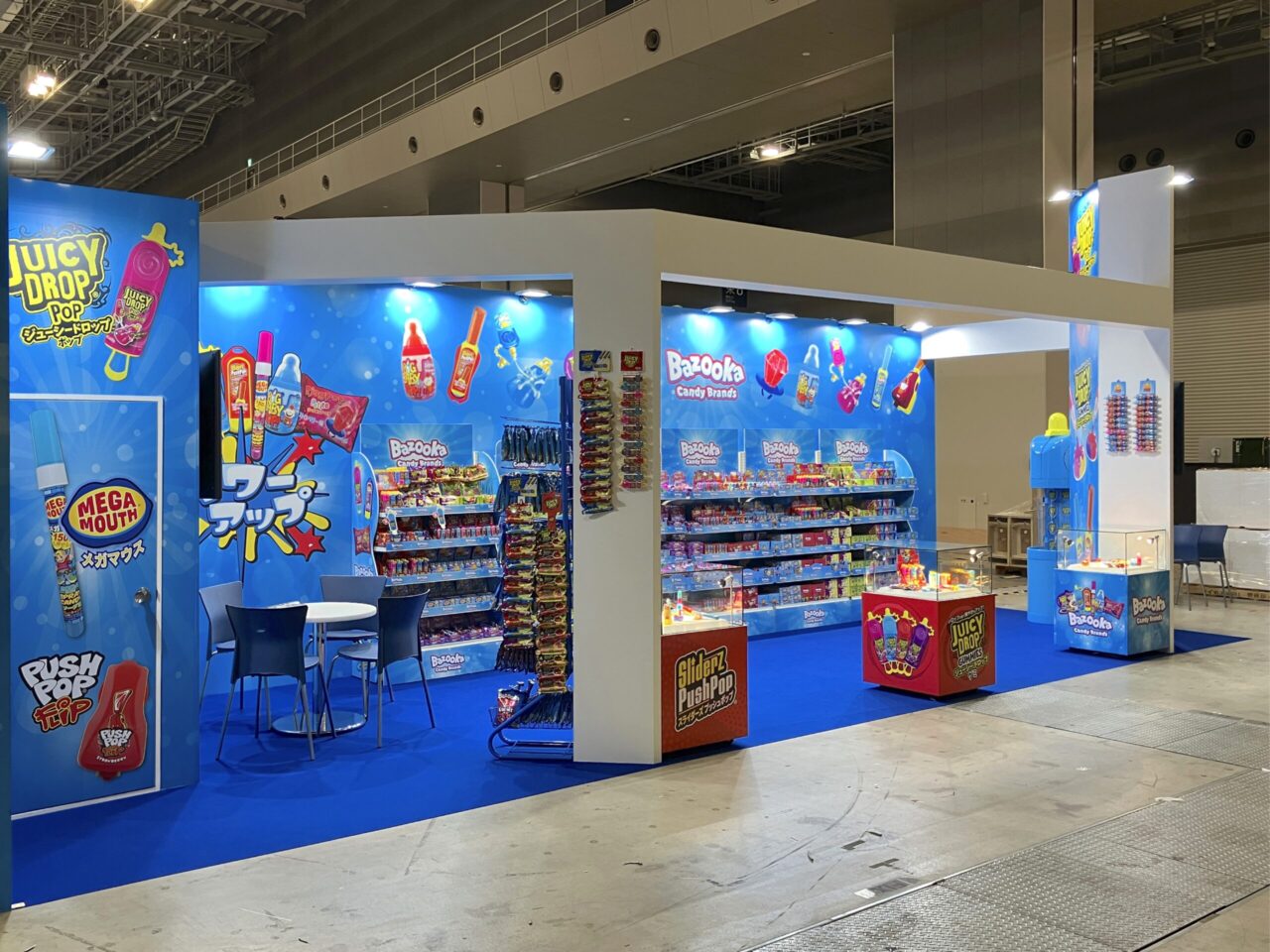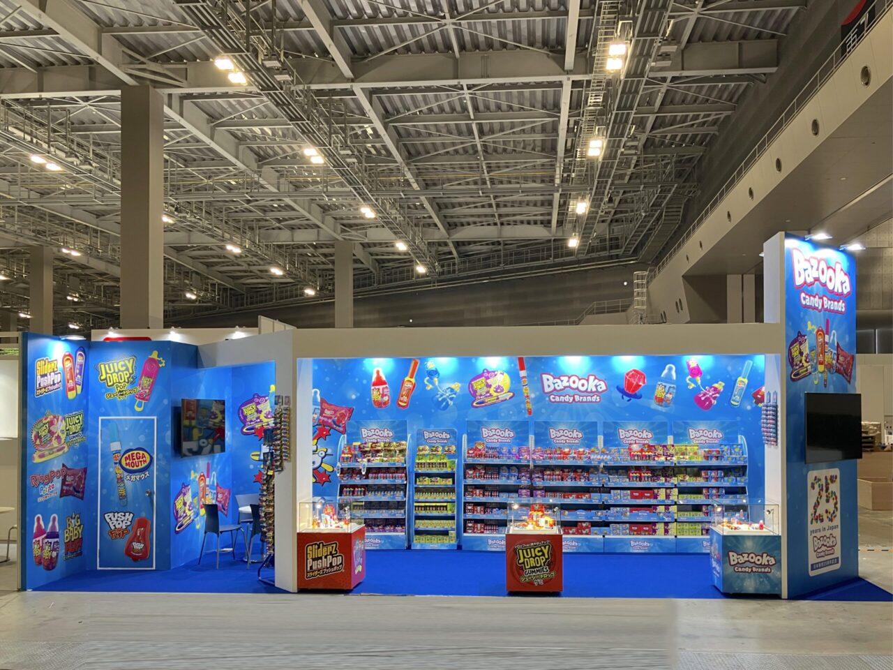 「食べられるエンターテイメント」というコンセプトのバズーカキャンディブランズ様のブースの制作をいたしました。