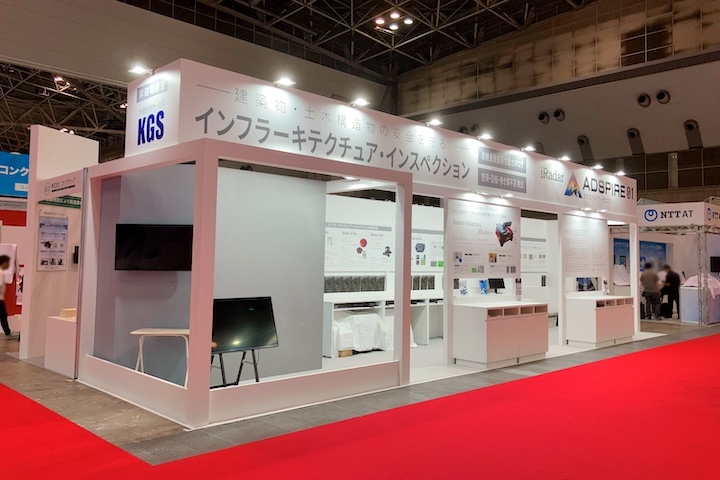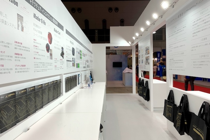 左のデモエリアでロボットを実際に動かして来場者を掴み、右側の展示エリアに誘導します。