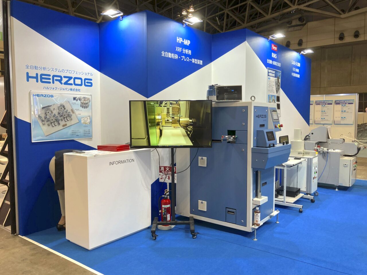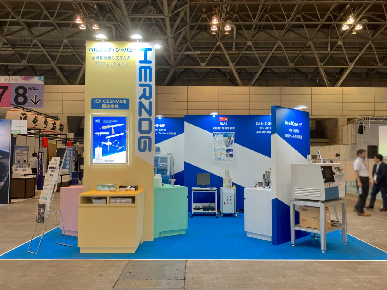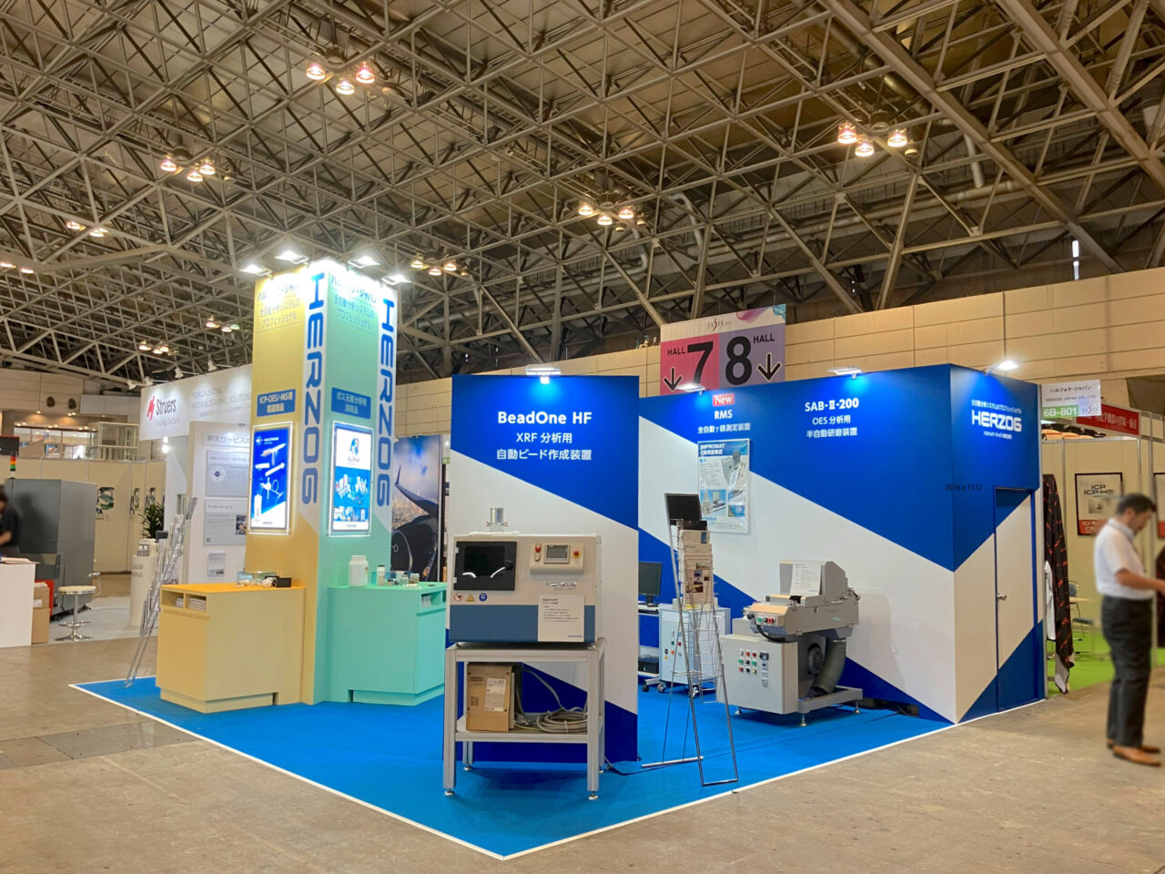 三角柱のタワーには大きくHERZOGの社名ロゴを掲げ、アイキャッチとして来場者の目を引きつけます。
