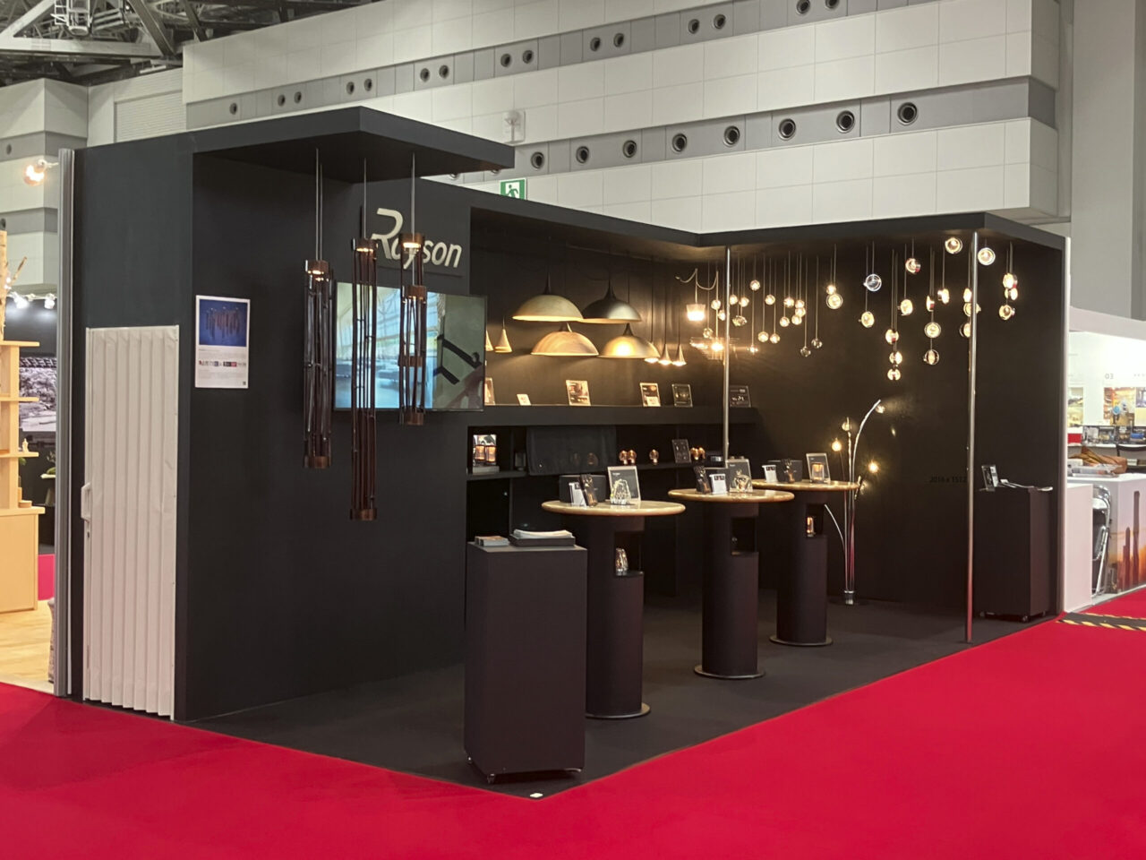 棚の一部に暗幕を取り付けて商品を展示しました。(正面中央展示台)