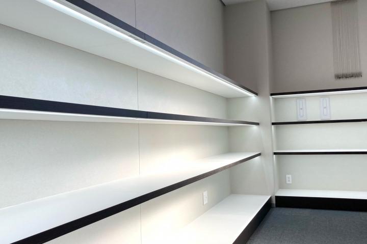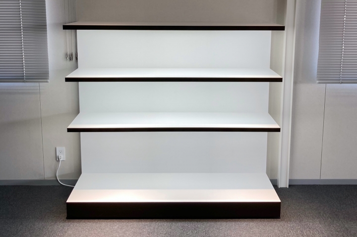 ■概要 商品を展示する什器の制作、設置を行いました。 壁や柱周りが垂直でない部分があったため 合わせてカットしながら納めました。 隙間はコーキングで処理しました。